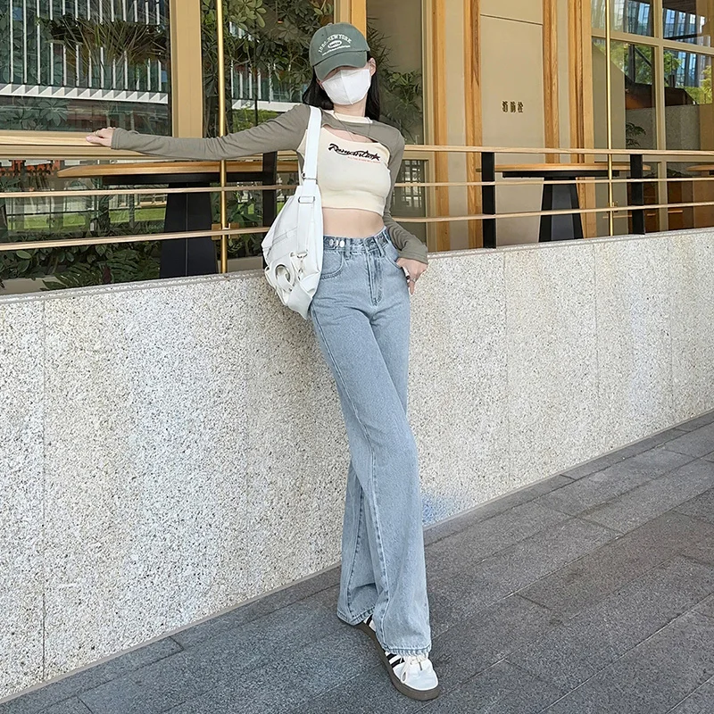 Jeans women spring summer 2024 new explosive horseshoe pants high-waisted skinny American stretch tight micro flare pants