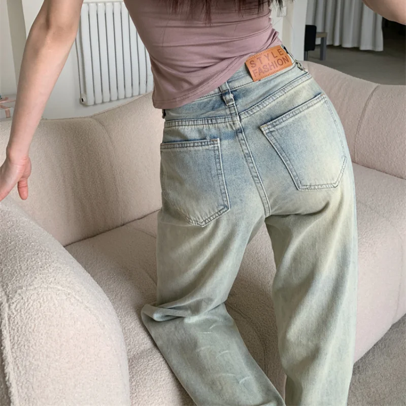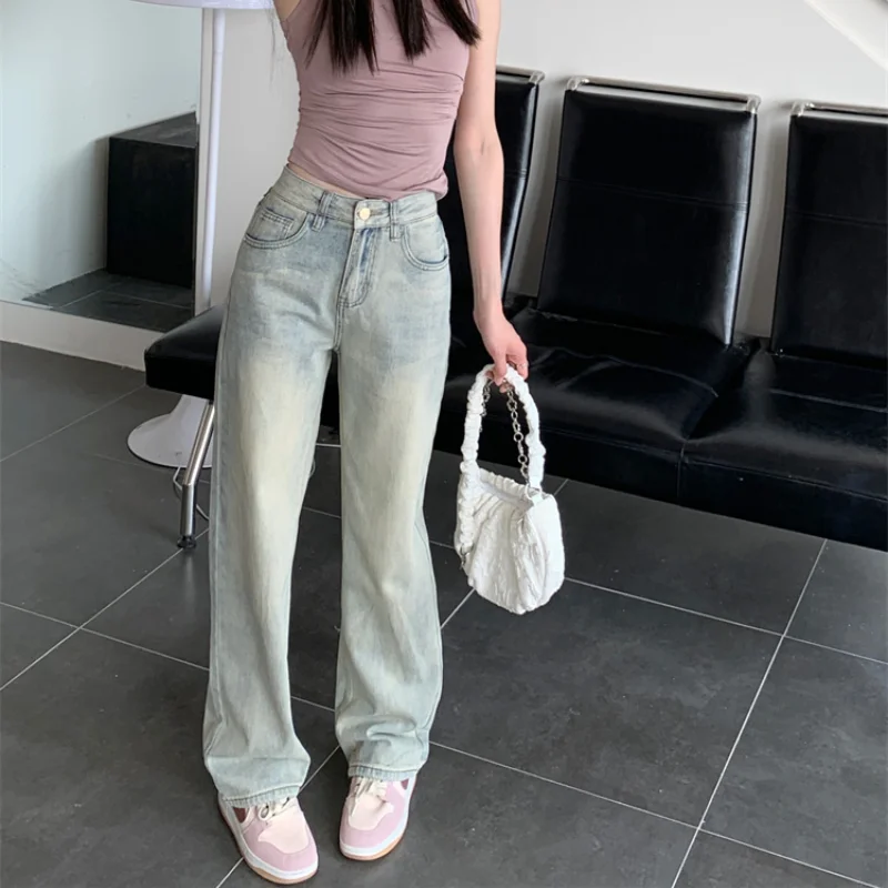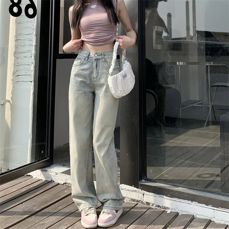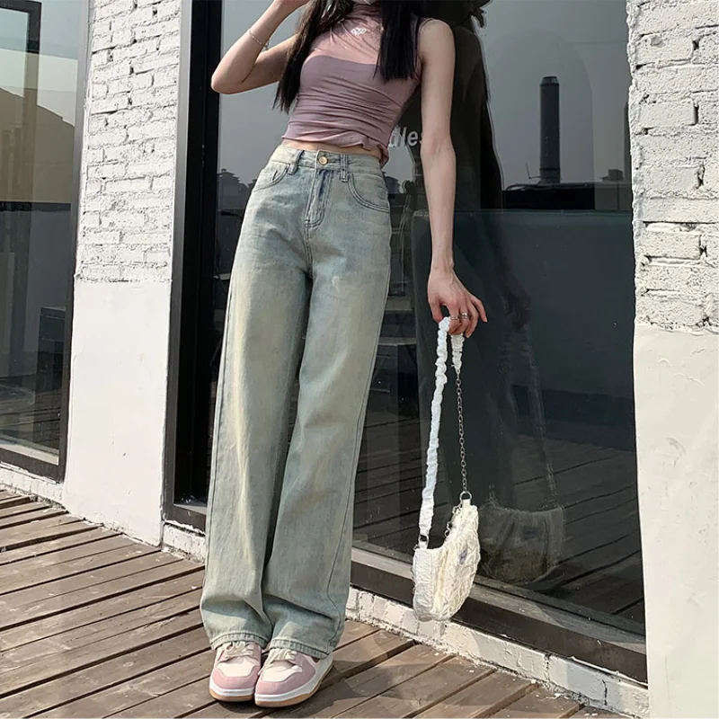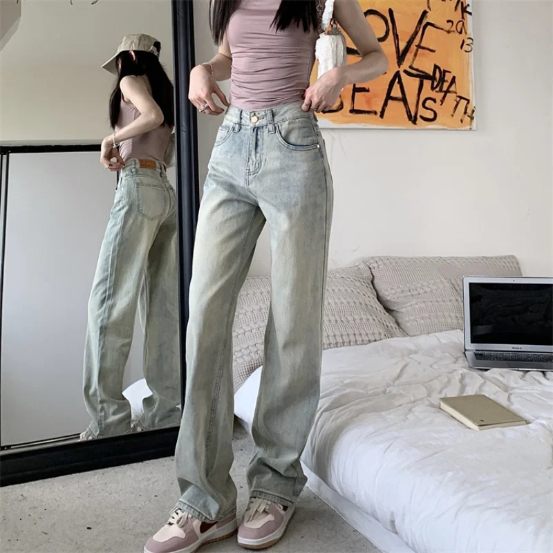 Be the first to review “Wide leg jeans women’s retro light yellow mud narrow version of summer thin high waist hanging loose straight leg pants”